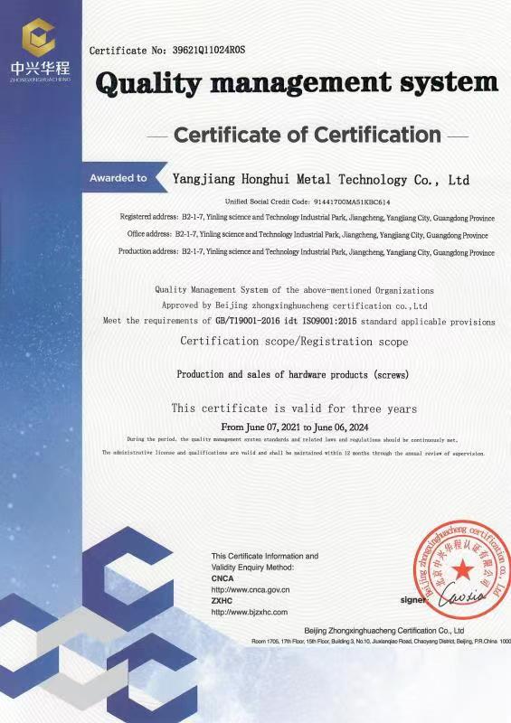 廣東宏惠金屬公司是家20多年一直專注鉆尾螺絲開發(fā)與生產(chǎn)的企業(yè),是國內(nèi)較早做鉆尾的廠家之一,同時也是國內(nèi)專業(yè)開發(fā)生產(chǎn)鉆尾螺絲的企業(yè)之一。 我司地址為于廣東省陽江市江銀嶺科技園距沈海高速白沙出口不到2公里,距陽江高鐵站也只有十余公里交通便利。 公司占地120畝,擁有超500臺套專業(yè)設(shè)計 生產(chǎn) 檢測設(shè)備。一個超200人的專業(yè)團隊,能夠嚴格按照ISO9001質(zhì)量體系要求生產(chǎn)符合GB DIN AS3566 ANSI JIS BS等標(biāo)準(zhǔn)的產(chǎn)品,生產(chǎn)銷售各種高品質(zhì)緊固件系列產(chǎn)品,為中高端客戶提供優(yōu)質(zhì)服務(wù)。也可按照客戶要求設(shè)計生產(chǎn)各種鉆尾,年產(chǎn)高品質(zhì)碳鋼 不銹鋼鉆尾螺絲2萬余噸.在各大客戶的鼎力支持下產(chǎn)品暢銷全國,并遠銷亞 非 拉 歐等地,在這20多年發(fā)展的道路上我司堅持“以質(zhì)量求生存,以信譽求發(fā)展”的精神理念不斷完善公司體系。